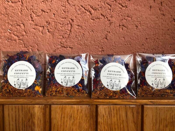 Onze producten worden met de hand geoogst/geplukt en verwerkt. Wij zijn een kleinschalige tuin en gebruiken geen grote machines of massa inkoop-materialen, dit zie je daarom ook terug in de prijs en het aantal. We telen de groenten, kruiden, bloemen en vruchten met veel liefde en respect voor de natuur en gebruiken daarbij geen kunstmest, pesticiden en andere bestrijdingsmiddelen.